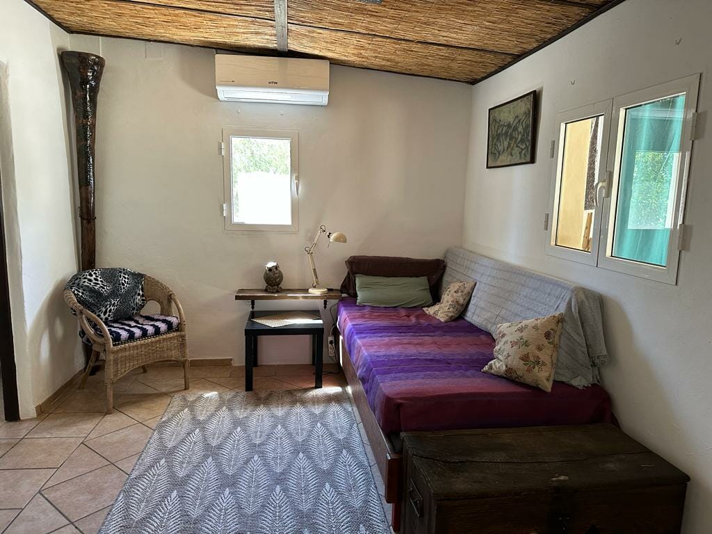 Das Gästehaus hat 2 Schlafzimmer (1 Doppelbett/2 Einzelbetten), ein Bad mit Dusche, WB, WC, ein Wohnzimmer mit Küchenbereich und eine verglaste Terrasse mit Küche.